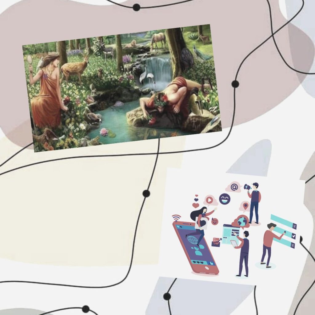 Ο Μάρσαλ ΜακΛούαν στο βιβλίο του “Media, οι προεκτάσεις του ανθρώπου” έχει αφιερώσει ένα ολόκληρο κεφάλαιο στην ανάλυση του μύθου[2]. Ουσιαστικά, ο ΜακΛούαν παίρνει τα πράγματα από την αρχή. Νάρκισσος, όπως λέμε Νάρκωσις, ύπνος δηλαδή, ή μούδιασμα. Ο Νάρκισσος, μόλις αντίκρισε το είδωλό του στο νερό, μούδιασε από την εικόνα. Νόμιζε, ότι μπροστά του είχε ένα «άλλο πρόσωπο». Στην πραγματικότητα, όμως πάγωσε από την ίδια την προέκταση του εαυτού του. Έγινε ένα μηχανιστικό στοιχείο της αναπαραγόμενης εικόνας του. Ανώφελα, η Ηχώ προσπάθησε με τα ίδια του, τα λόγια προσπάθησε να τον βοηθήσει, να τον «σώσει». Εκείνος είχε αποκοπεί πλήρως από τον εξωτερικό κόσμο, είχε γίνει ένα κλειστό σύστημα. Αυτό είναι το κεντρικό σημείο, στο οποίο εστιάζει ο Μάρσαλ ΜακΛούαν, στο γεγονός, ότι οι άνθρωποι μαγεύονται από κάθε είδους προέκταση του εαυτού τους, σε οποιοδήποτε υλικό, που είναι έξω από αυτούς. Αν και κάποιοι κυνικοί ισχυρίζονται, πως οι περισσότεροι άντρες τείνουν να ερωτεύονται τις γυναίκες, που τους μοιάζουν, που «επιστρέφουν» την εικόνα τους, ο συγγραφέας αντιτίθεται σε αυτόν τον ισχυρισμό. Για να ενισχύσει τη θέση του, εξηγεί, ότι σε καμία περίπτωση, η φιλοσοφία του μύθου δεν είναι, ότι ο Νάρκισσος ερωτεύτηκε κάτι, που θεωρούσε προέκταση του εαυτού του. Τα συναισθήματά του θα ήταν διαφορετικά, αν είχε τη γνώση του εαυτού του, πως η αντανάκλαση ήταν μια επανάληψη του ιδίου. Είναι ενδεχομένως ένα στερεοτυπικό δείγμα της τεχνολογικής και ναρκωτικής μας κουλτούρας, ότι από παλιά, υπάρχει η πεποίθηση, πως ο Νάρκισσος ερωτεύτηκε το είδωλό του.