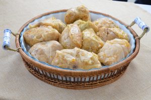 Τα γιαπράκια, ένα είδος λαχανοντολμάδων, ήταν ένα βασικό πιάτο για το Χριστουγεννιάτικο τραπέζι και συμβόλιζε το φάσκιωμα του νεογέννητου Χριστού. Η ονομασία “γιαπράκια” προέρχεται από την τούρκικη λέξη Yaprak που σημαίνει “φύλλο”.